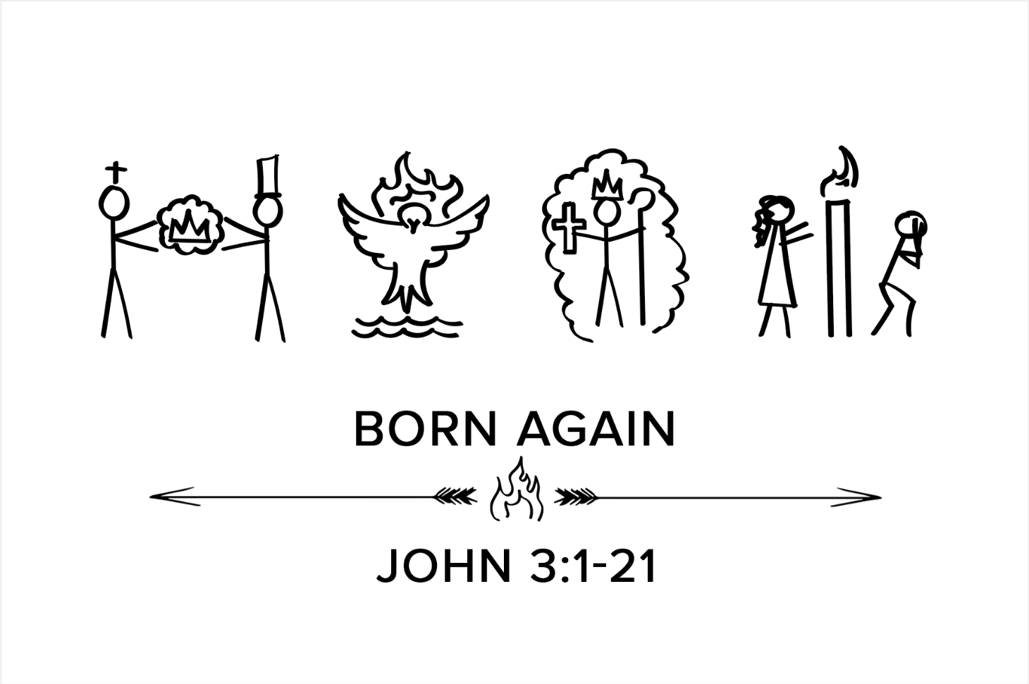 Drawings: Jesus explained that we must die to self (water) and be reborn in the Holy Spirit (dove & fire).